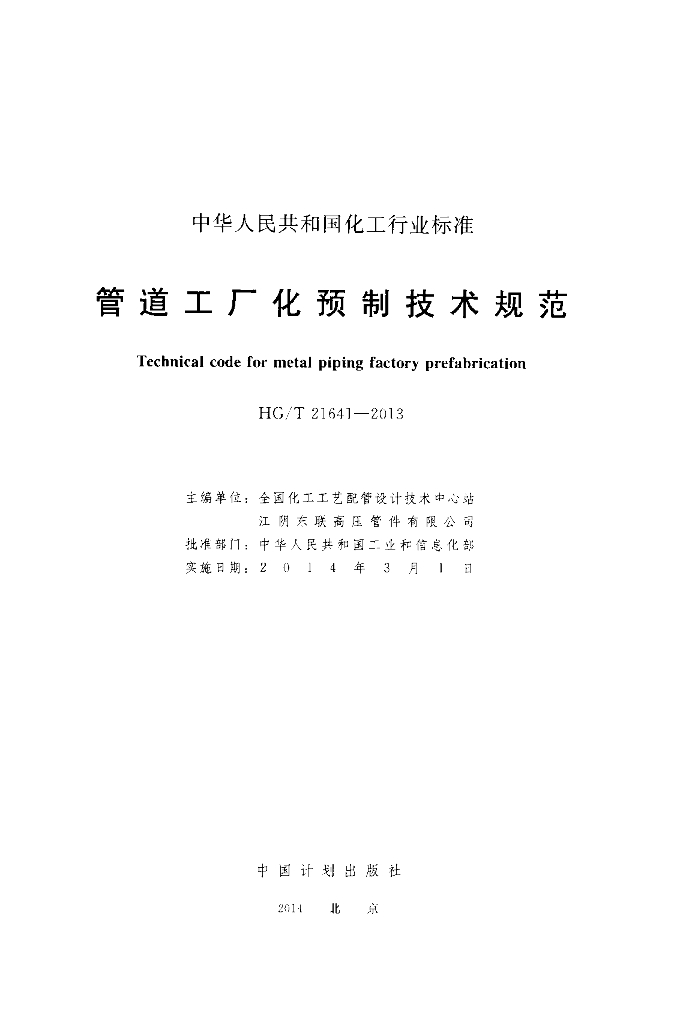 HG/T 21641-2013 管道工厂化预制技术规范