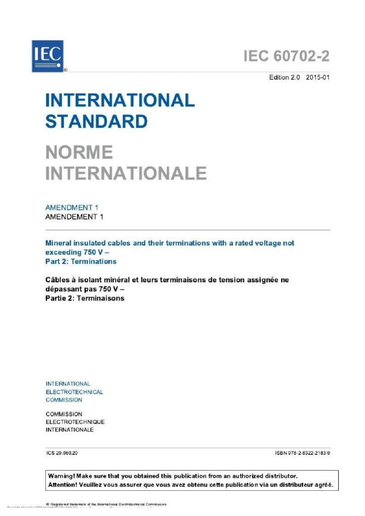 IEC 60702-1:2002+AMD1:2015 额定电压不超过750V矿物绝缘电缆及其端子 第1部分 电缆