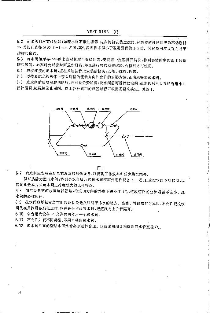 YY/T 0153-1993 蒸汽疏水阀的选型、安装、使用、维护导则