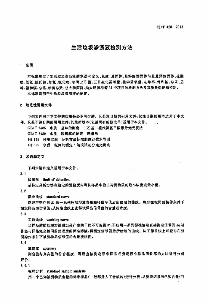 CJ/T 428-2013 生活垃圾渗沥液检测方法