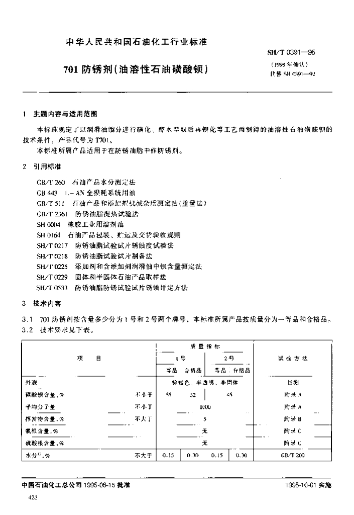 SH/T 0391-1995 701防锈剂(油溶性石油磺酸钡)