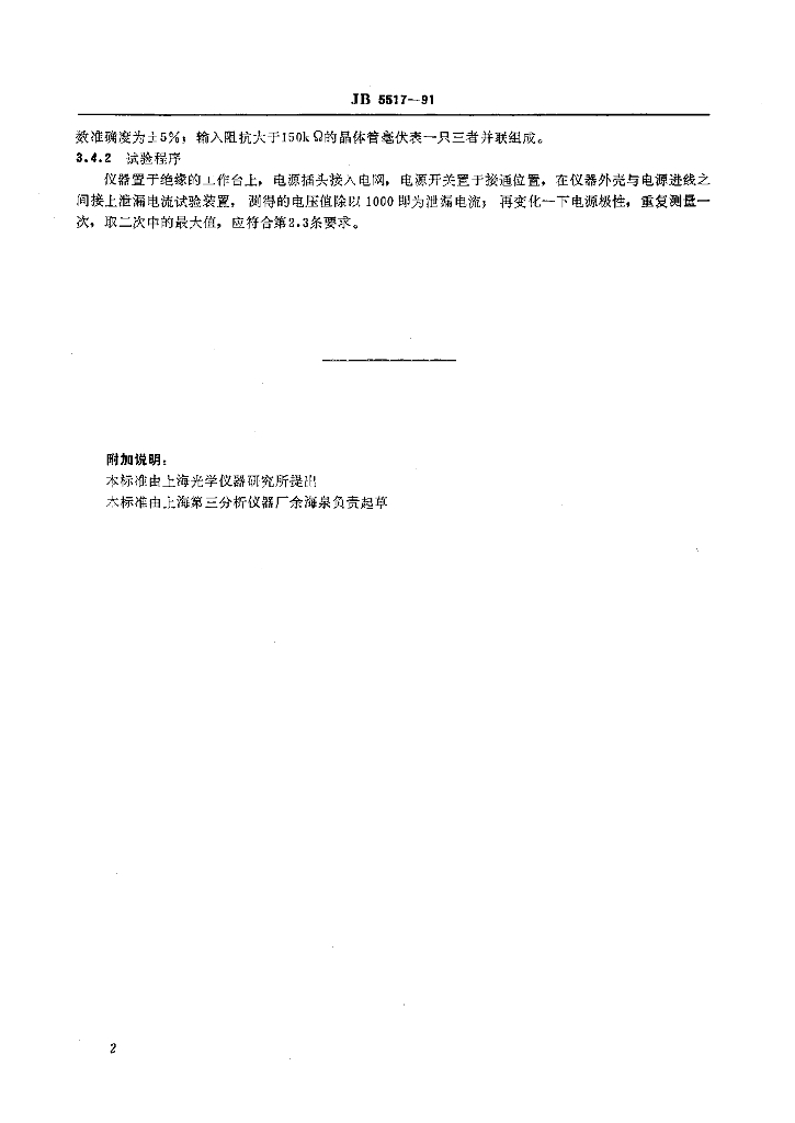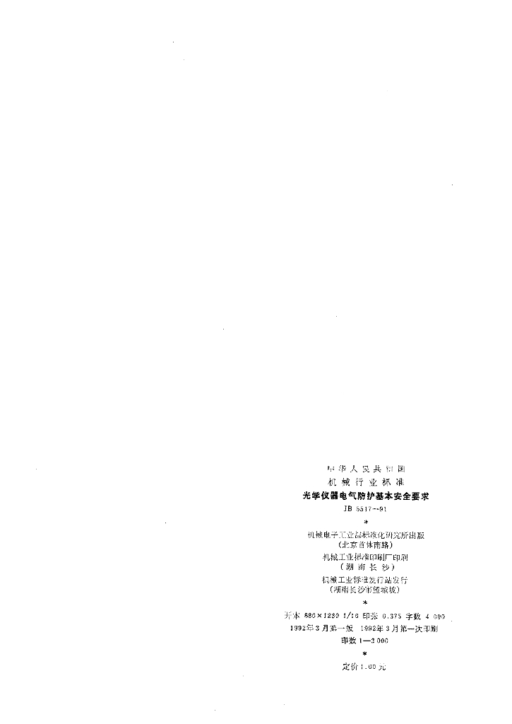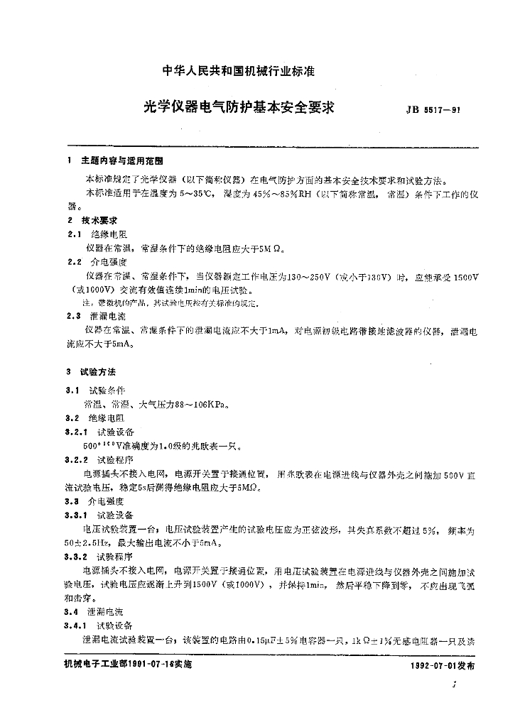 JB 5517-1991 光学仪器 电气防护基本安全要求