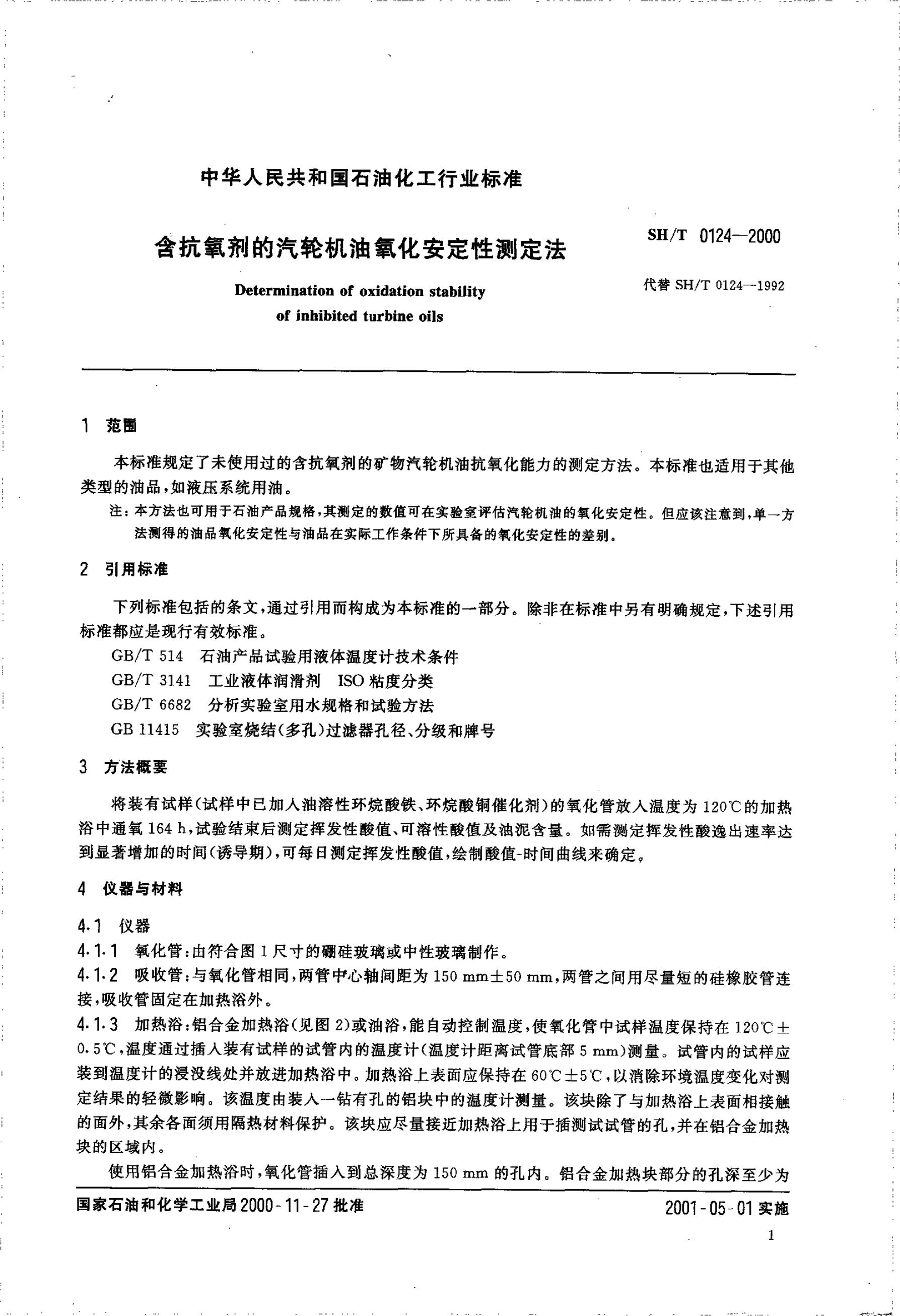 SH/T 0124-1992 含抗氧剂的汽轮机油氧化安定性测定法