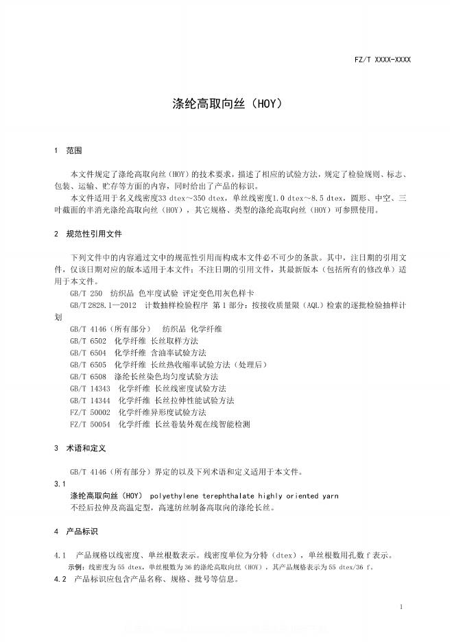 FZ/T 54144-2023 涤纶高取向丝(HOY)