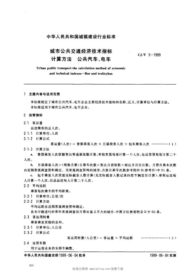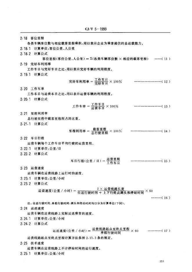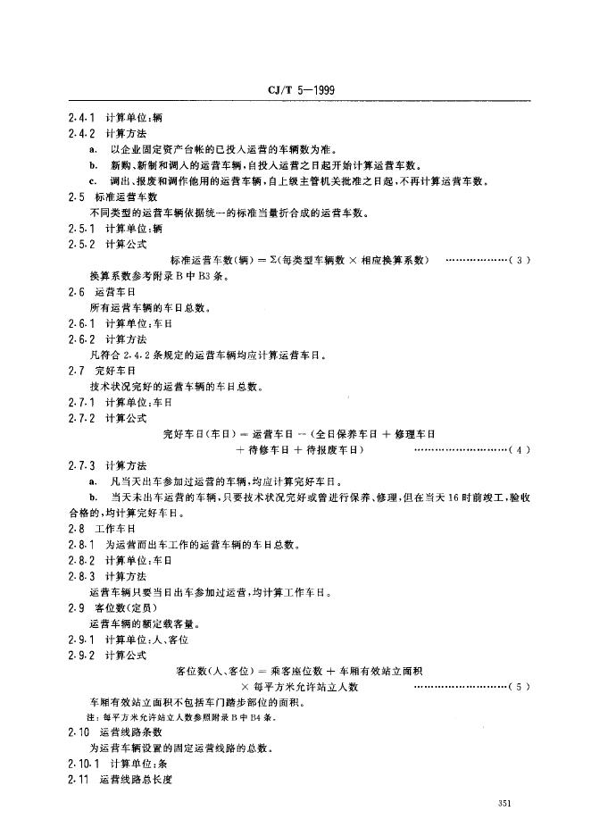 CJ/T 5-1999 城市公共交通技术经济指标计算方法 公共汽车、电车