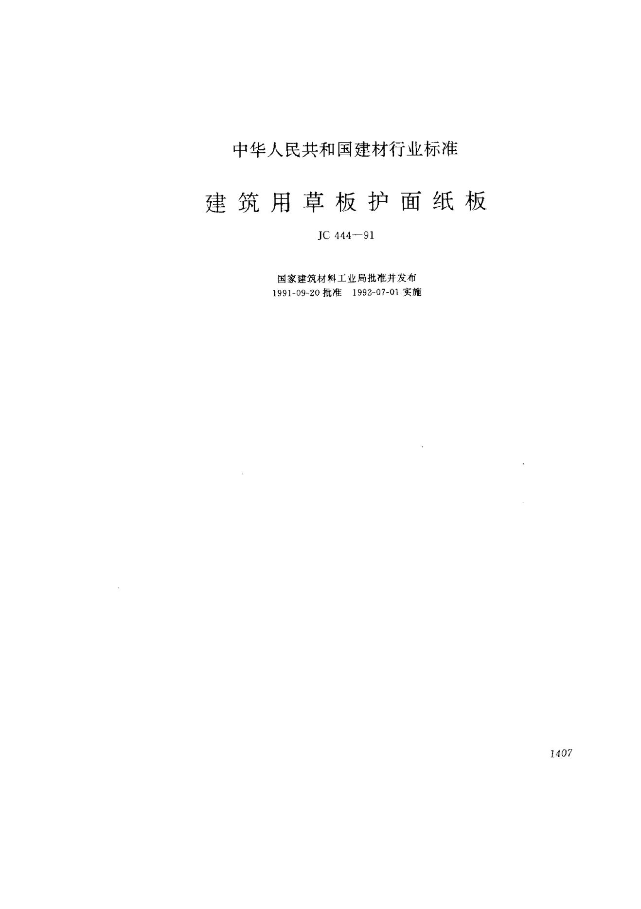 JC 444-1991 建筑用草板护面纸板