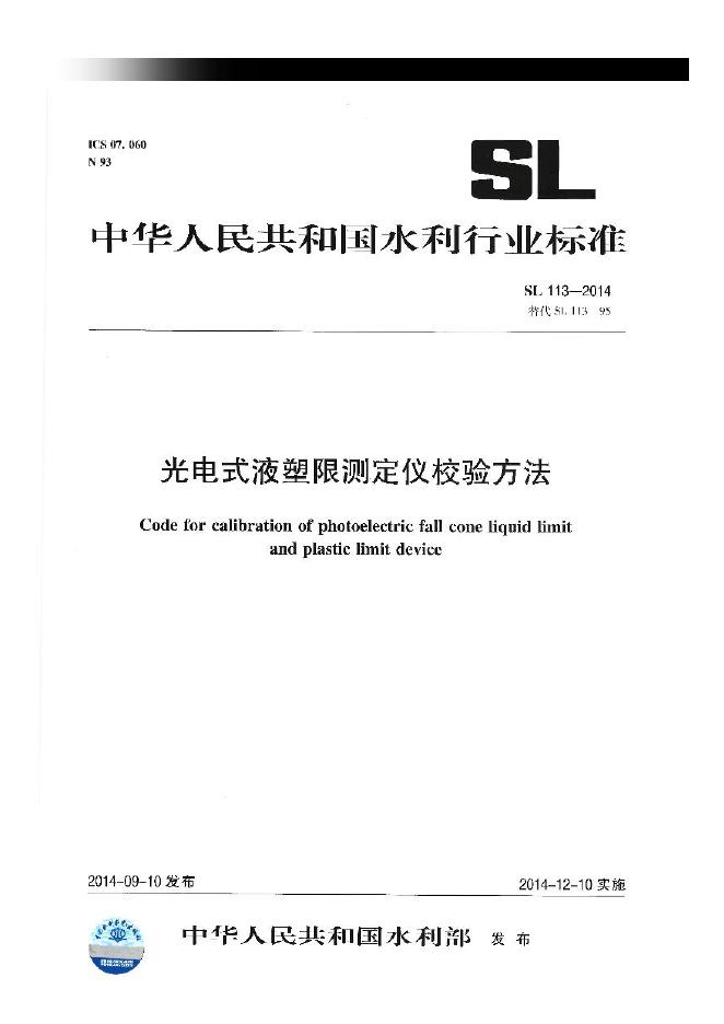 SL/T 113-2014 光电式液塑限测定仪校验方法
