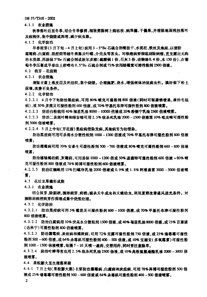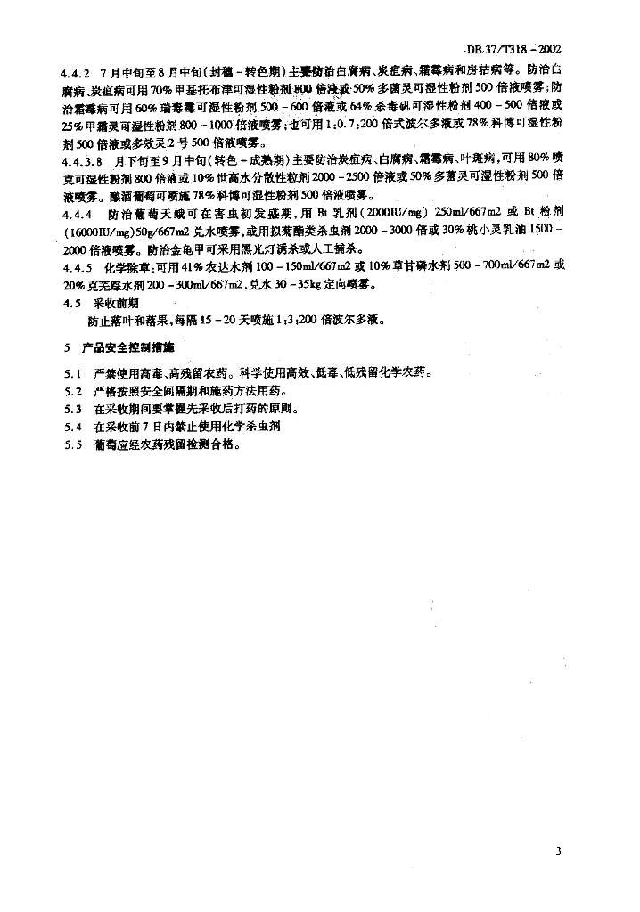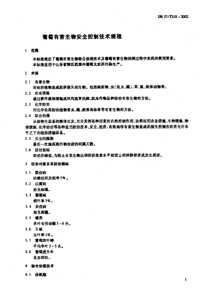 DB37/T 318-2002 葡萄有害生物安全控制技术规程
