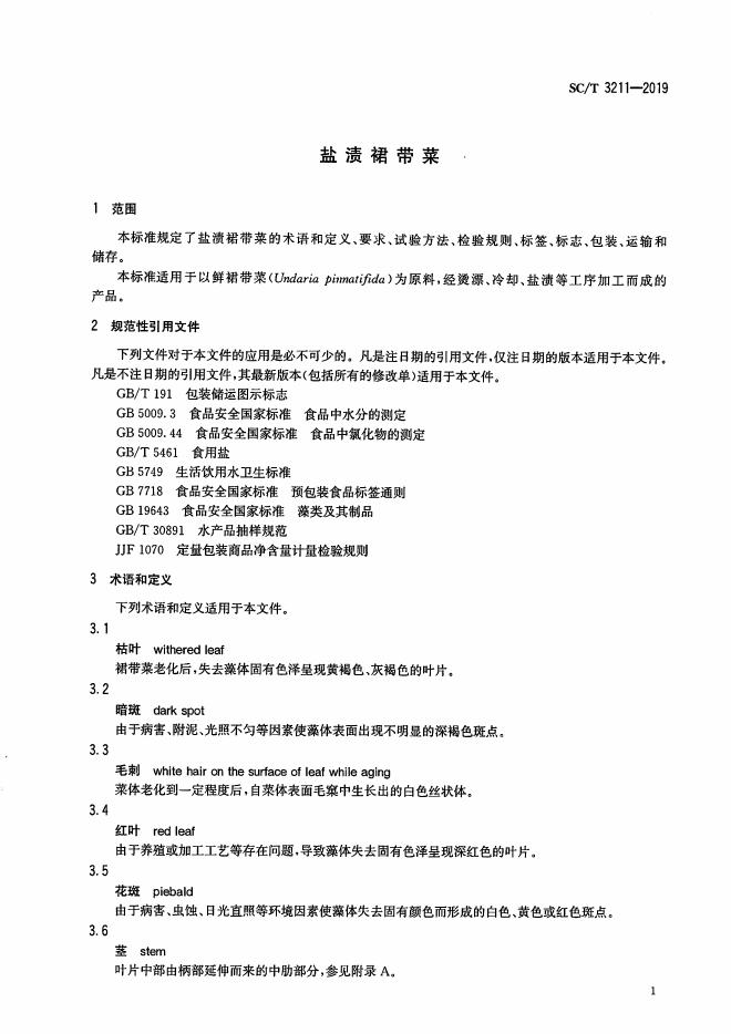 SC/T 3211-2019 盐渍裙带菜