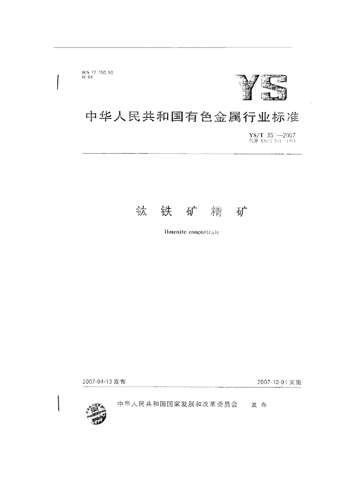 YS/T 351-2007 钛铁矿精矿