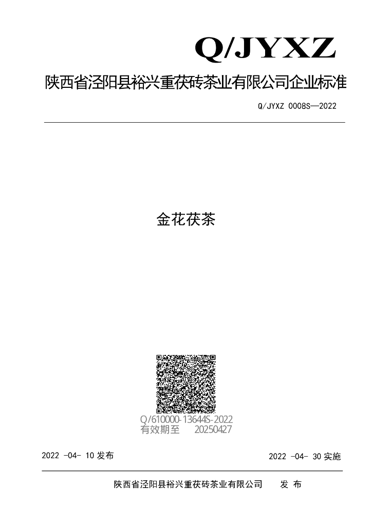 Q/JYXZ 0008S-2022 金花茯茶
