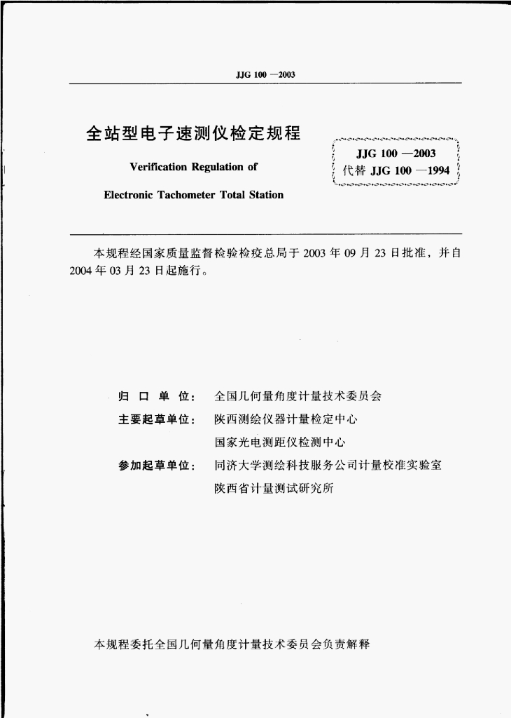 - 代替标准:JJG 100-1994