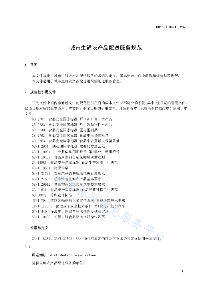 DB15/T 3874-2025 城市生鲜农产品配送服务规范