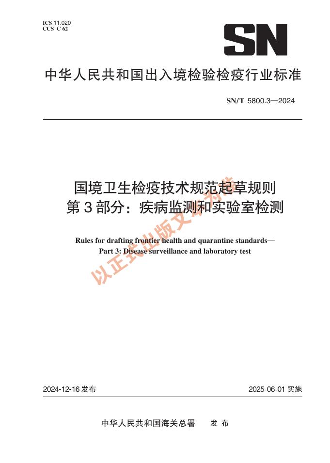 SN/T 5800.3-2024 国境卫生检疫技术规范起草规则 第3部分:疾病监测和实验室检测