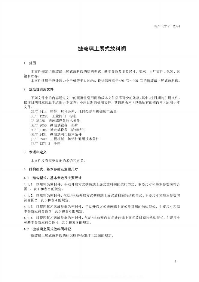 HG/T 3217-2024 搪玻璃上展式放料阀