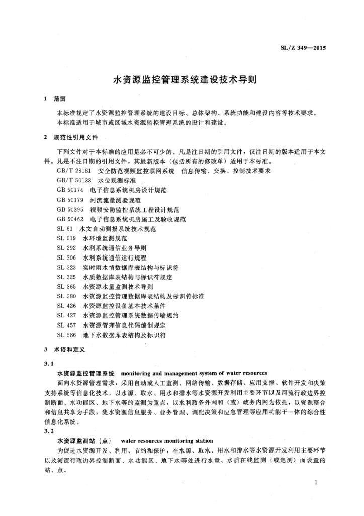 SL/Z 349-2015 水资源监控管理系统建设技术导则