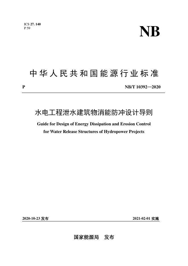 NB/T 10392-2020 水电工程泄水建筑物消能防冲设计导则