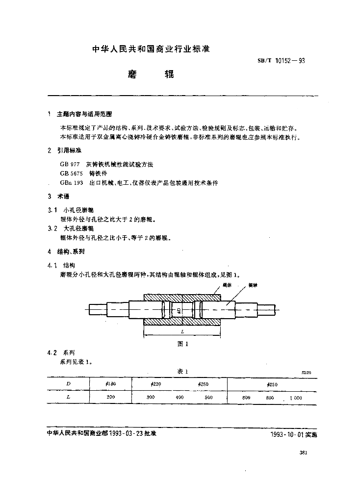 SB/T 10152-1993 磨辊(LS/T 3513-1993)