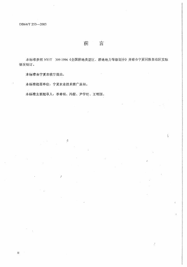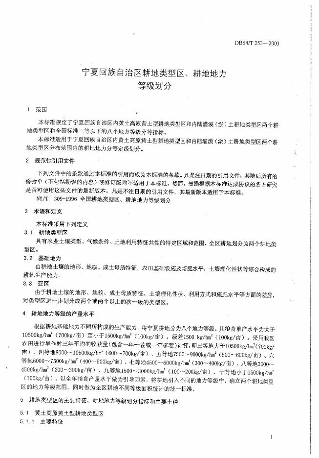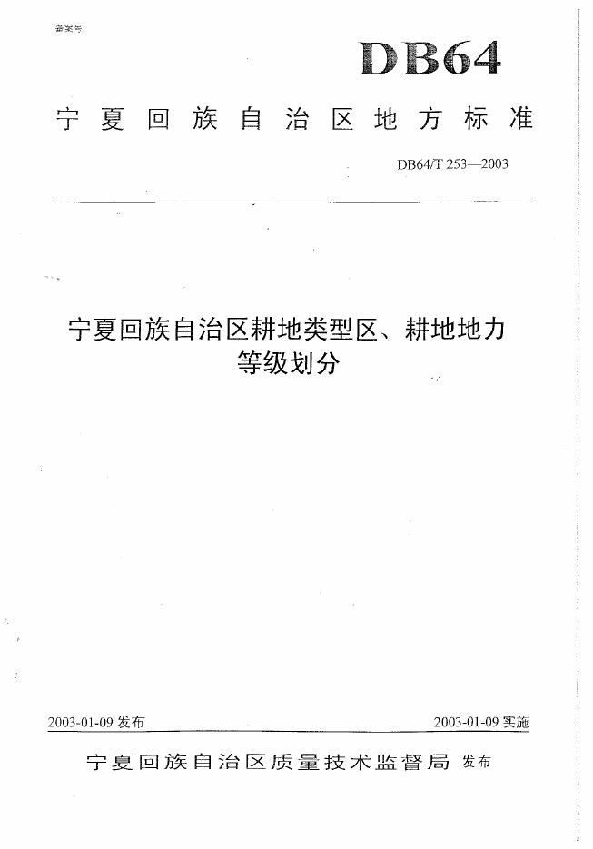 DB64/T 253-2003 宁夏回族自治区耕地类型区、耕地地力等级