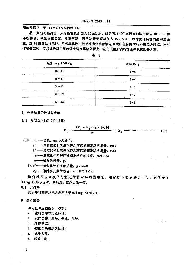 HG/T 2709-1995 聚酯多元醇中羟值的测定