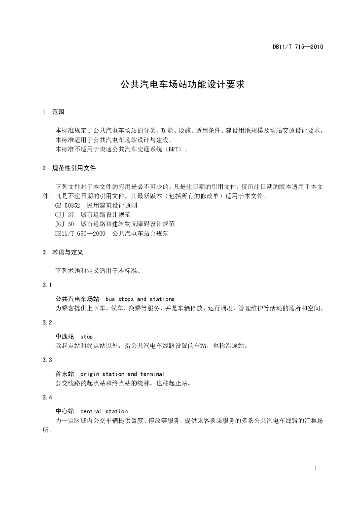 DB11/T 715-2010 公共汽电车场站功能设计要求