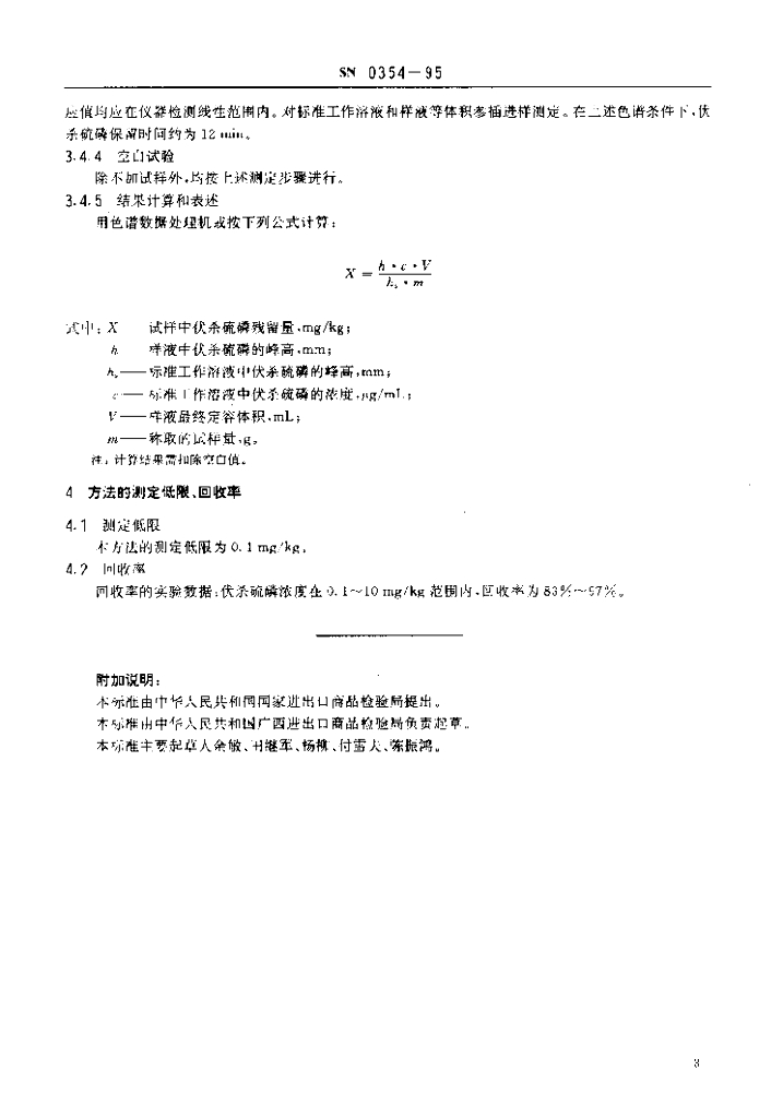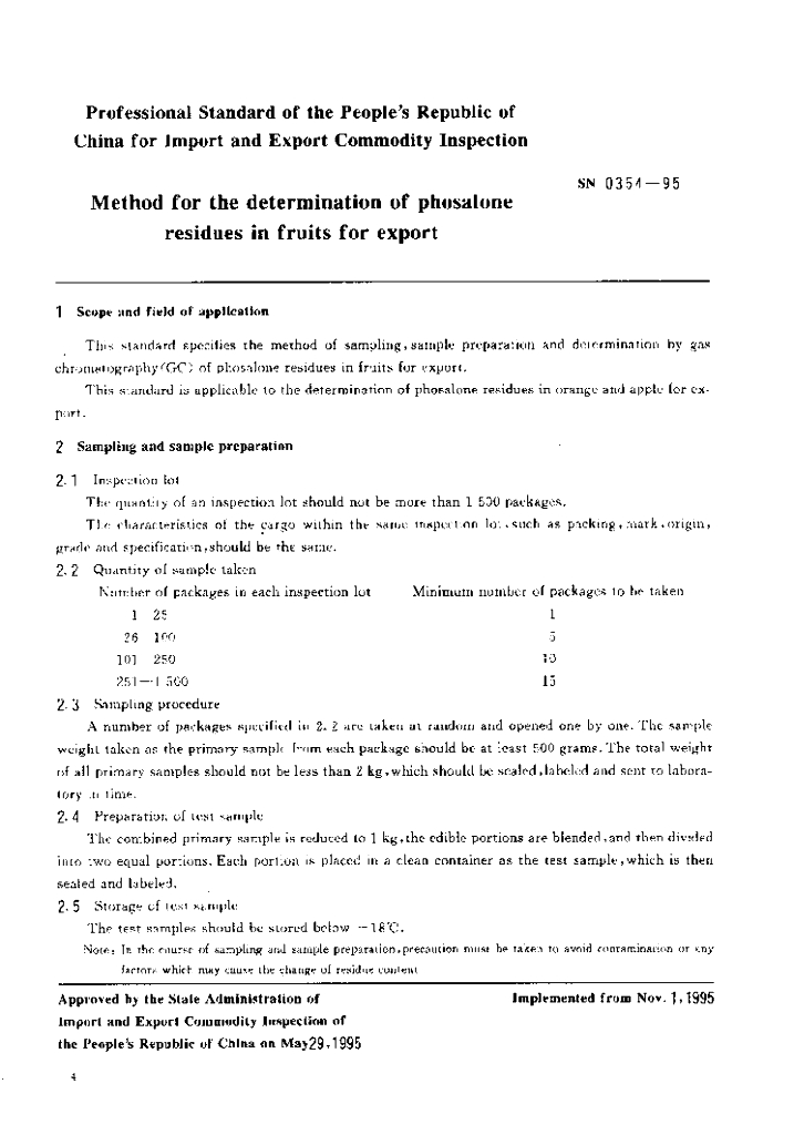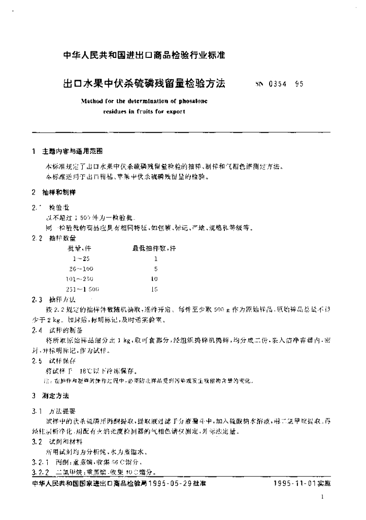 SN 0354-1995 出口水果中伏杀硫磷残留量检验方法