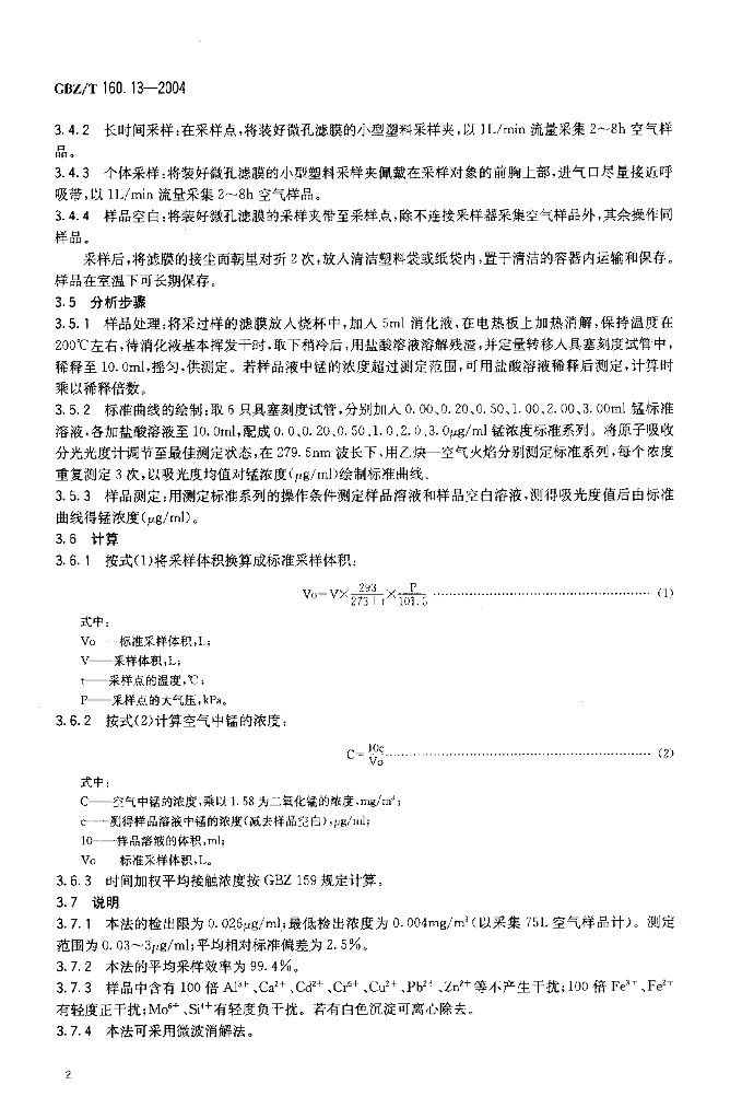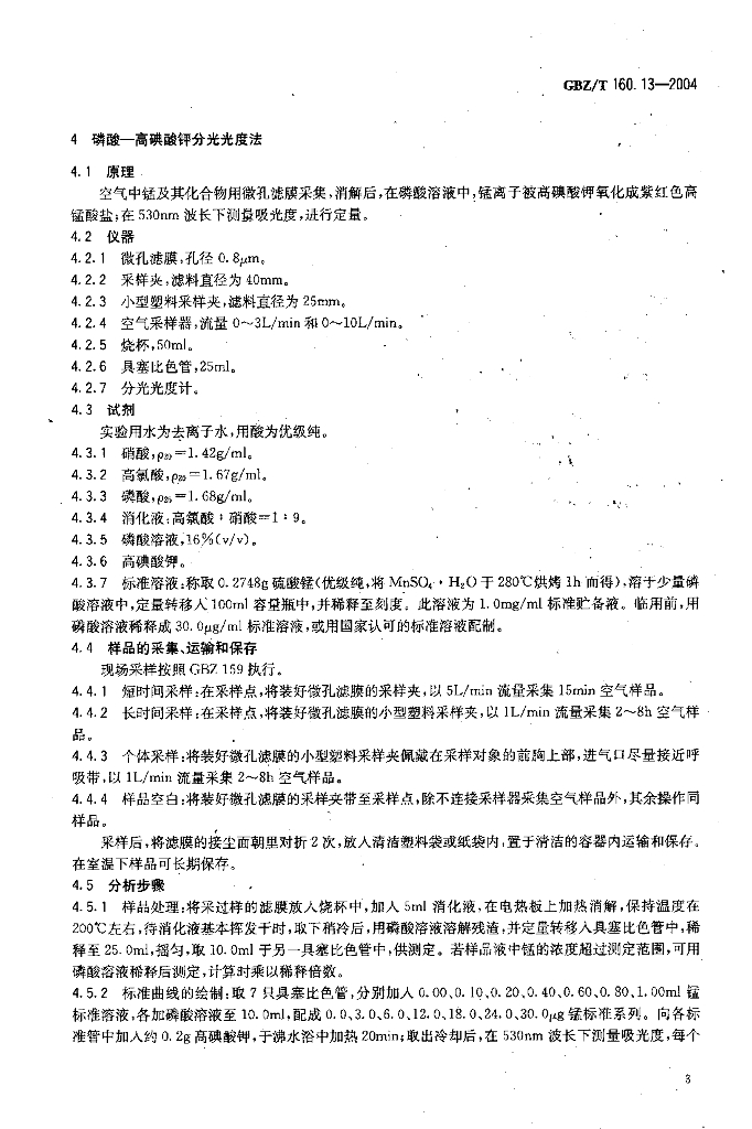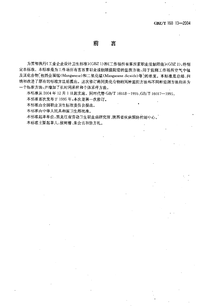 GBZ/T 160.13-2004 工作场所空气有毒物质测定 锰及其化合物