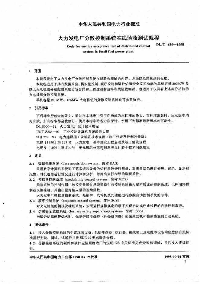 DL/T 659-1998 火力发电厂分散控制系统在线验收测试规程