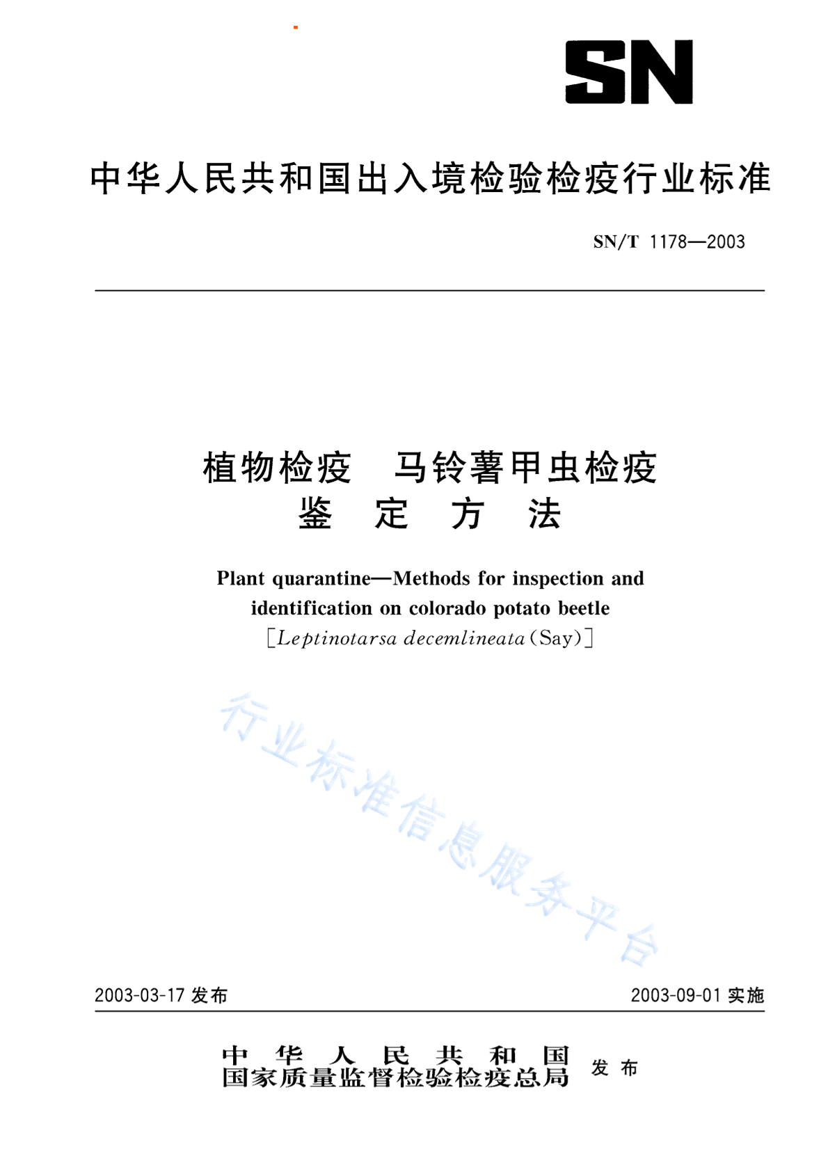 SN/T 1178-2003 马铃薯甲虫检疫鉴定方法