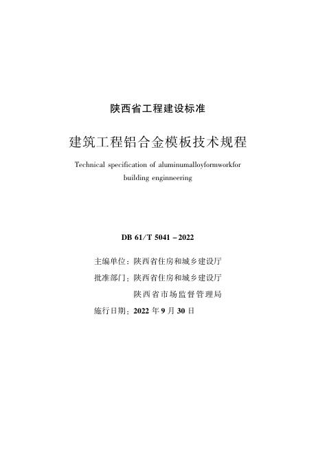 DB61/T 5041-2022 建筑工程铝合金模板技术规程
