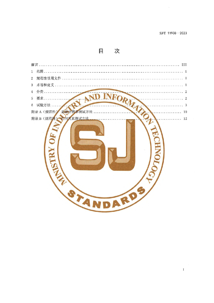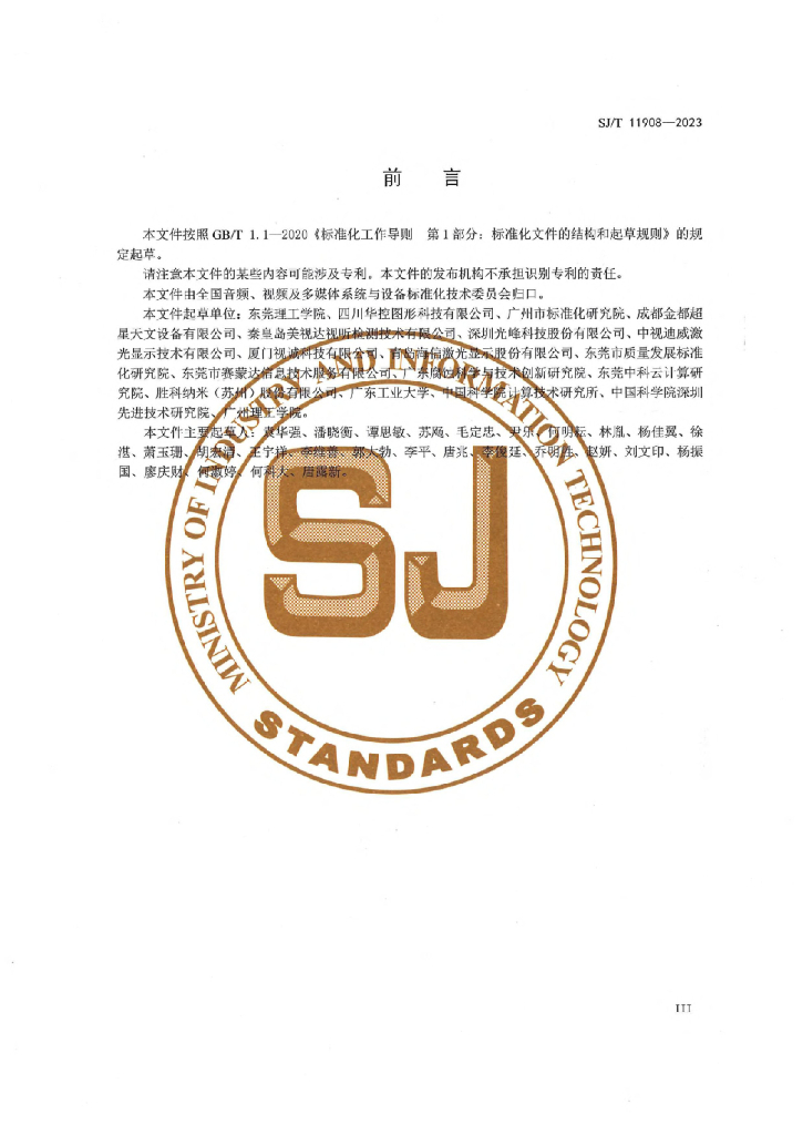 SJ/T 11908-2023 前投影式全景球面显示系统技术规范