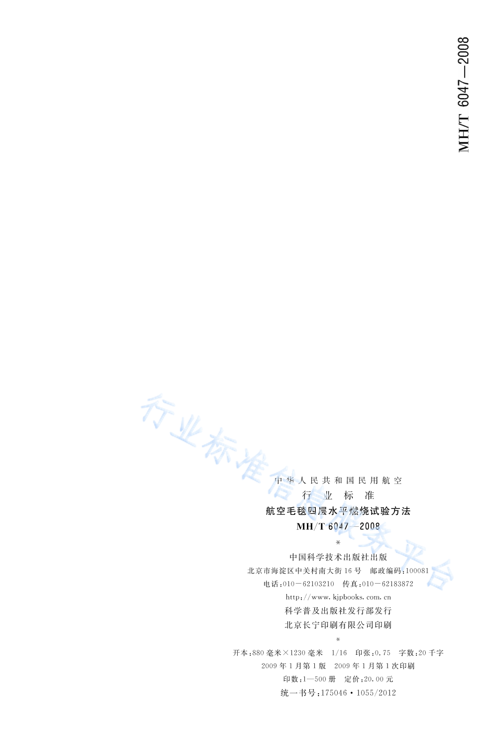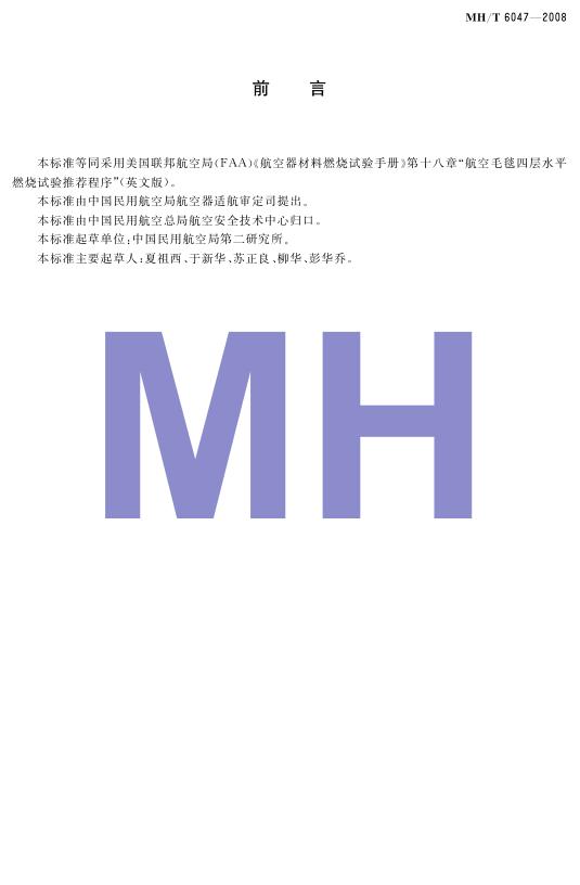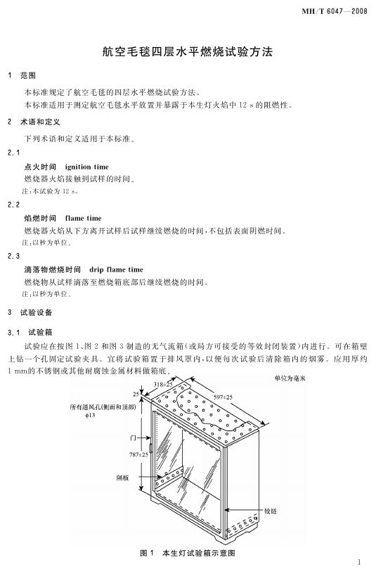 MH/T 6047-2008 航空毛毯四层水平燃烧试验方法