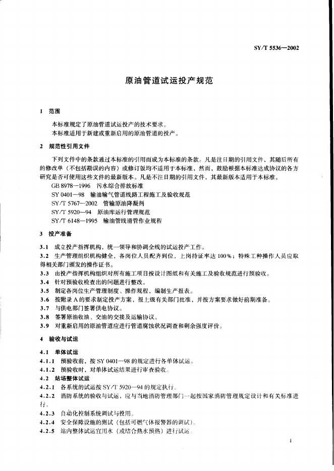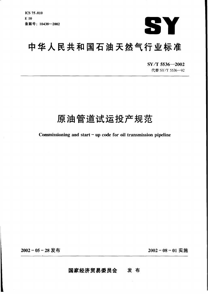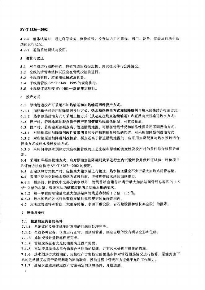 SY/T 5536-1992 原油加热输送管道试运投产规范