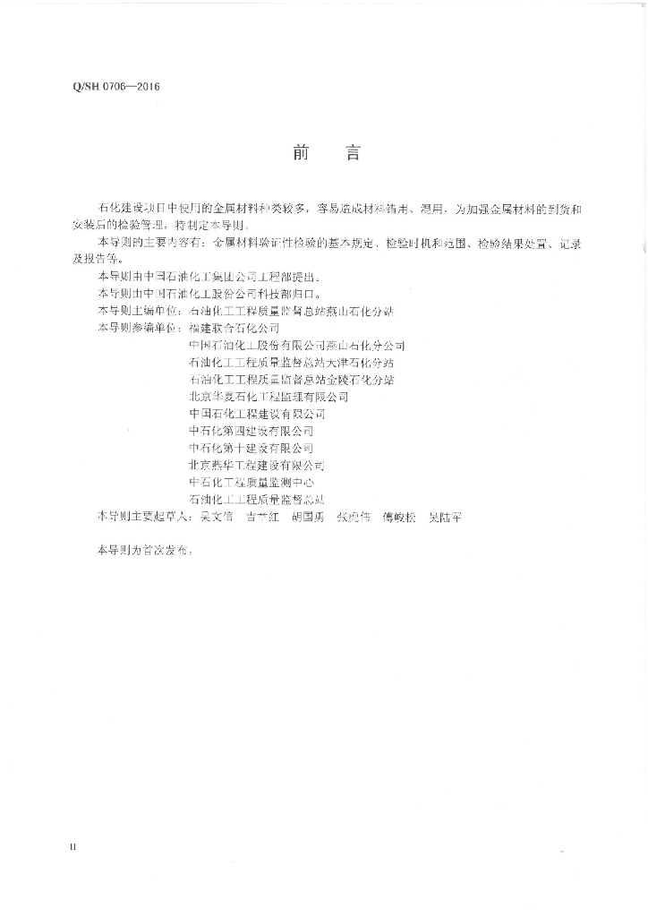 Q/SH 0706-2016 金属材料验证性检验导则