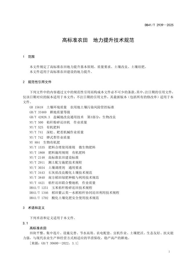 DB41/T 2939-2025 高标准农田 地力提升技术规范