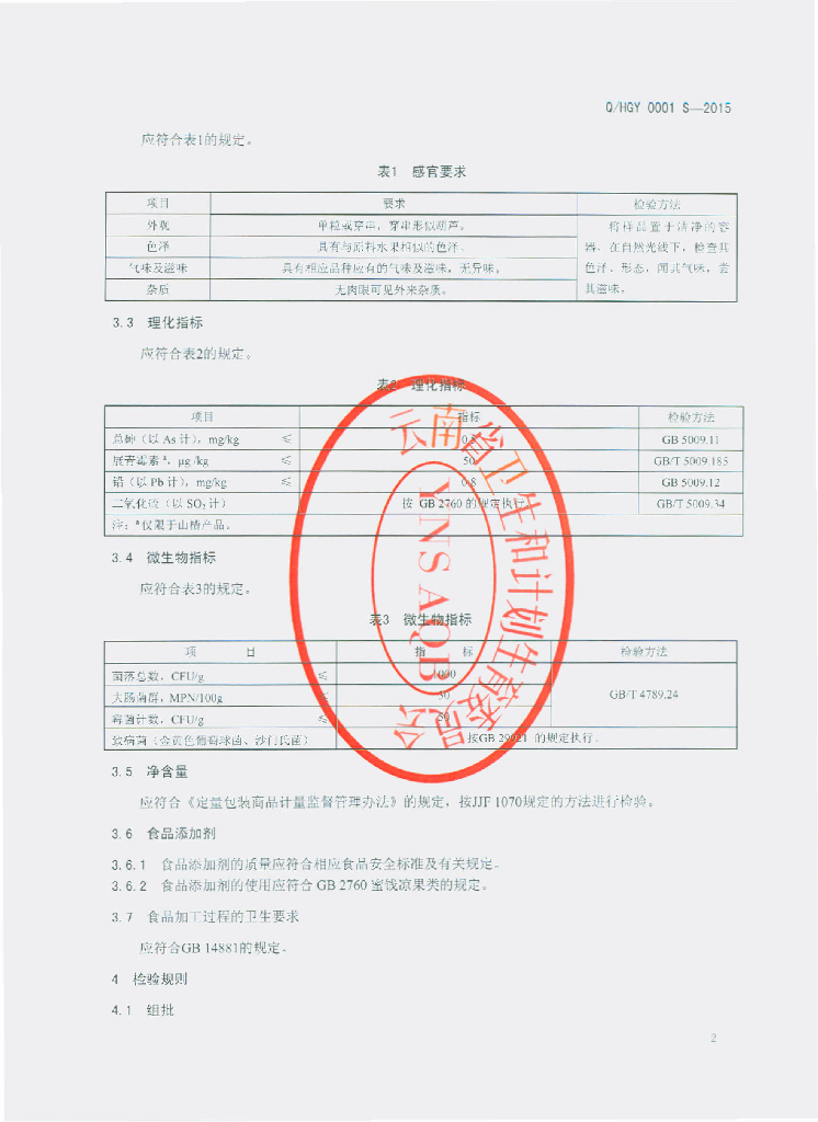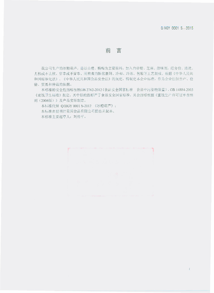 Q/HGY 0001S-2015 昆明红果园食品有限公司 冰糖葫芦