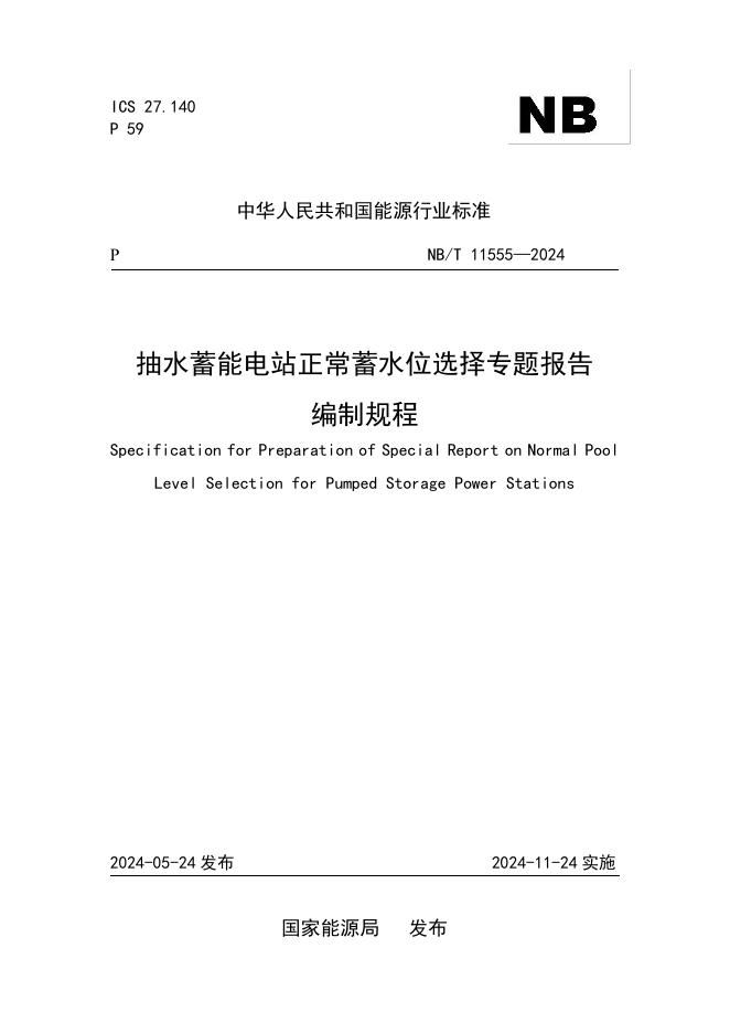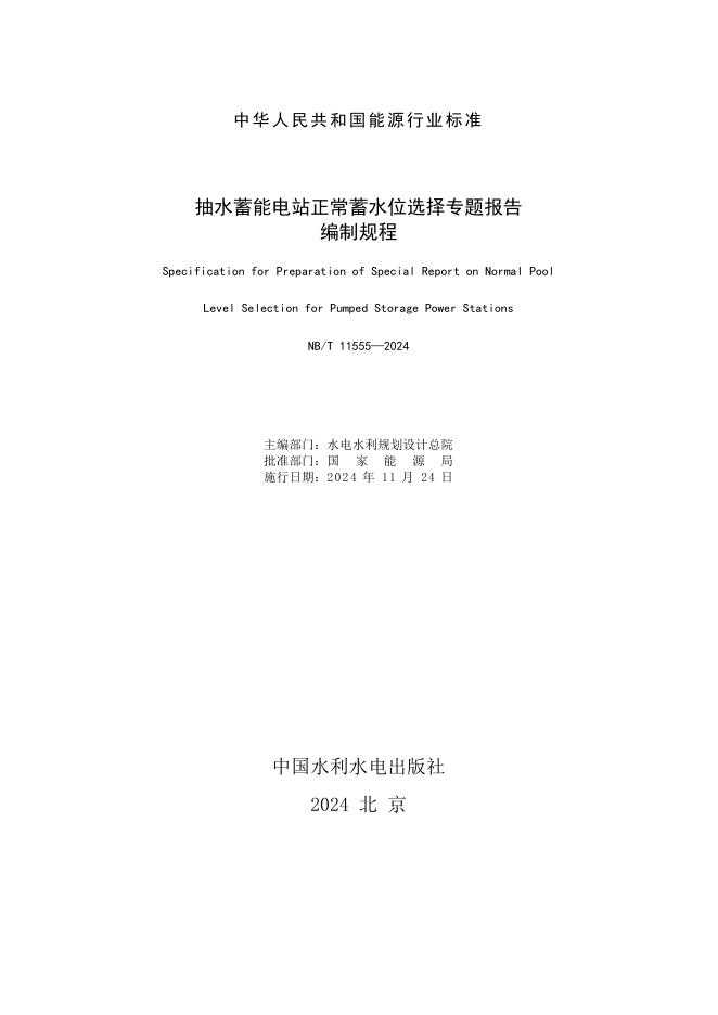 NB/T 11555-2024 抽水蓄能电站正常蓄水位选择专题报告编制规程