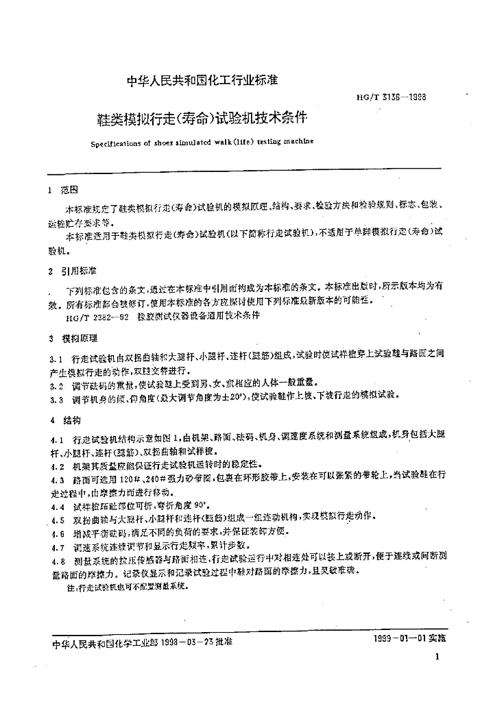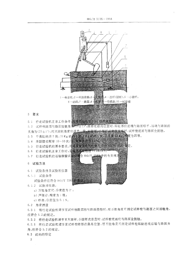 HG/T 3136-1998 鞋类模拟行走(寿命)试验机技术条件