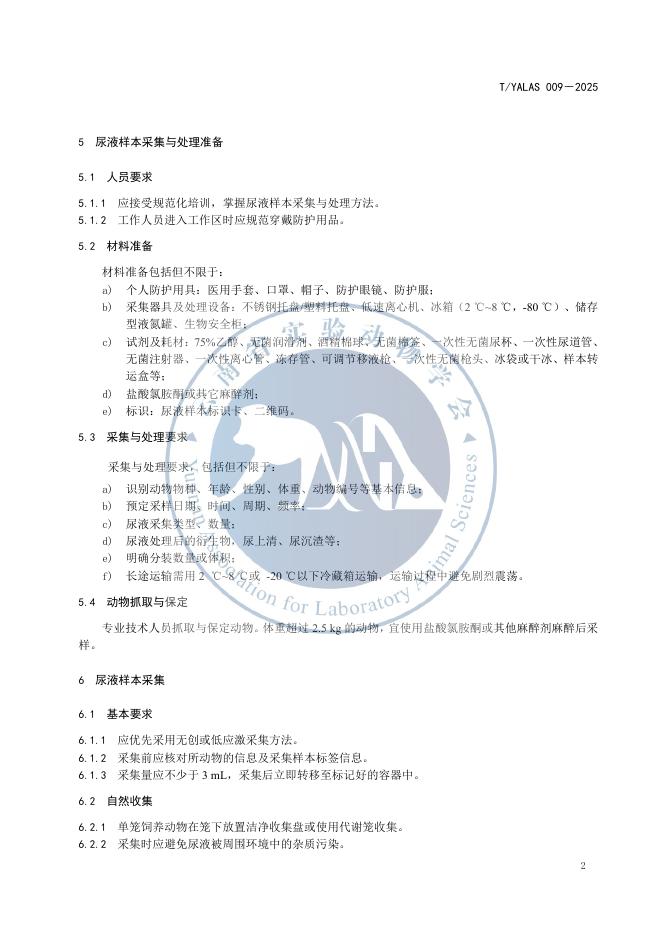 T/YALAS 009-2025 非人灵长类尿液样本采集与处理