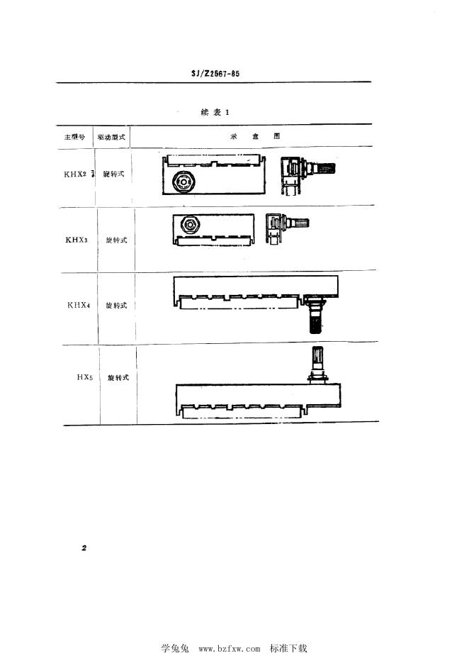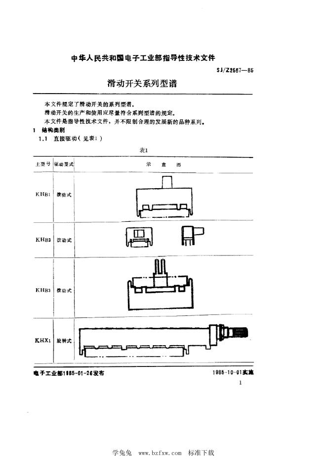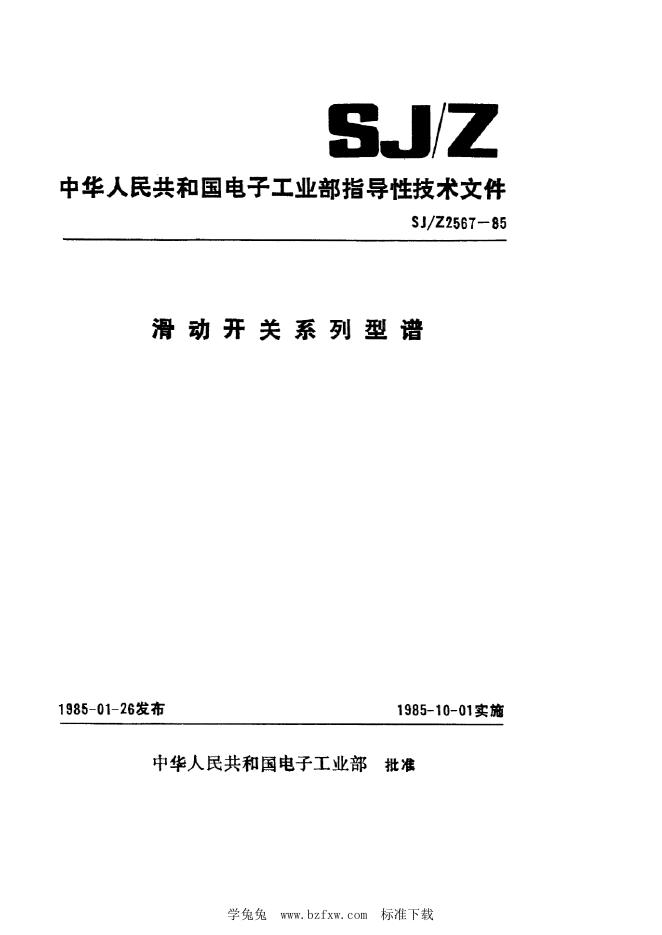 SJ/Z 2567-1985 滑动开关系列型谱
