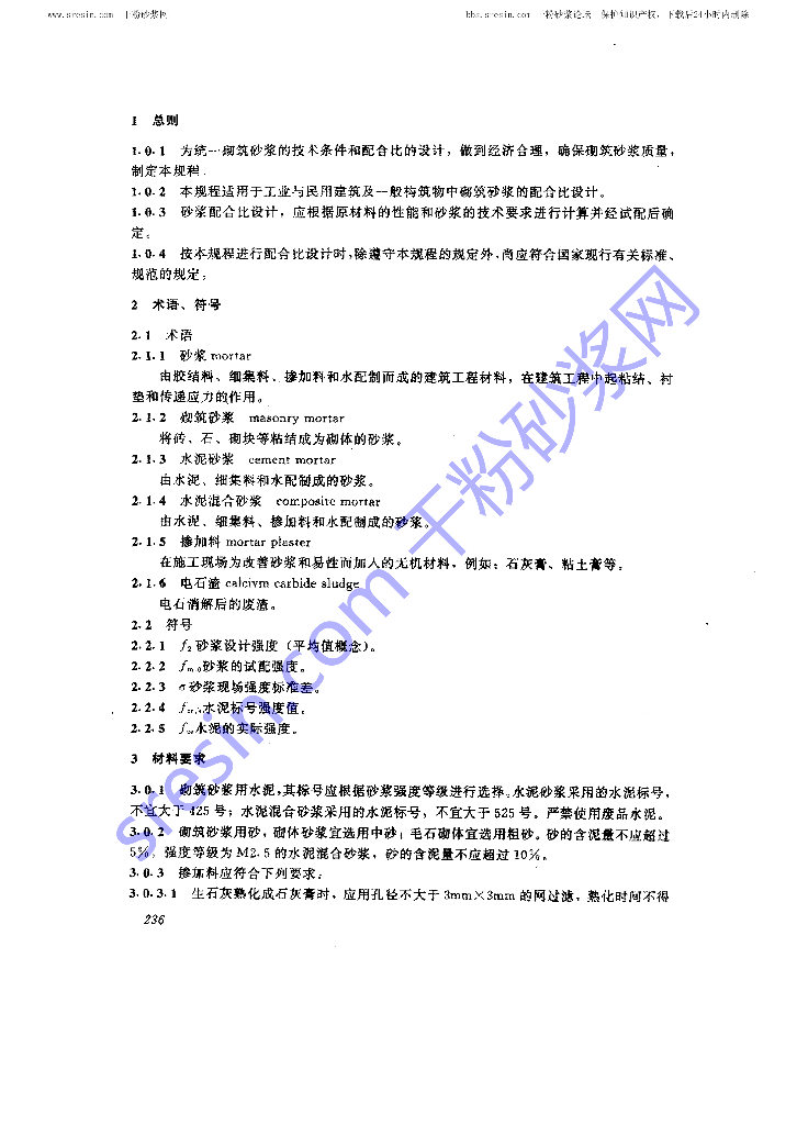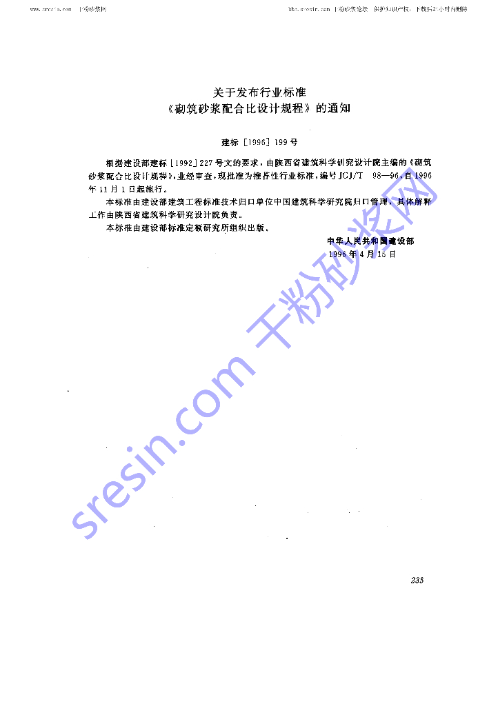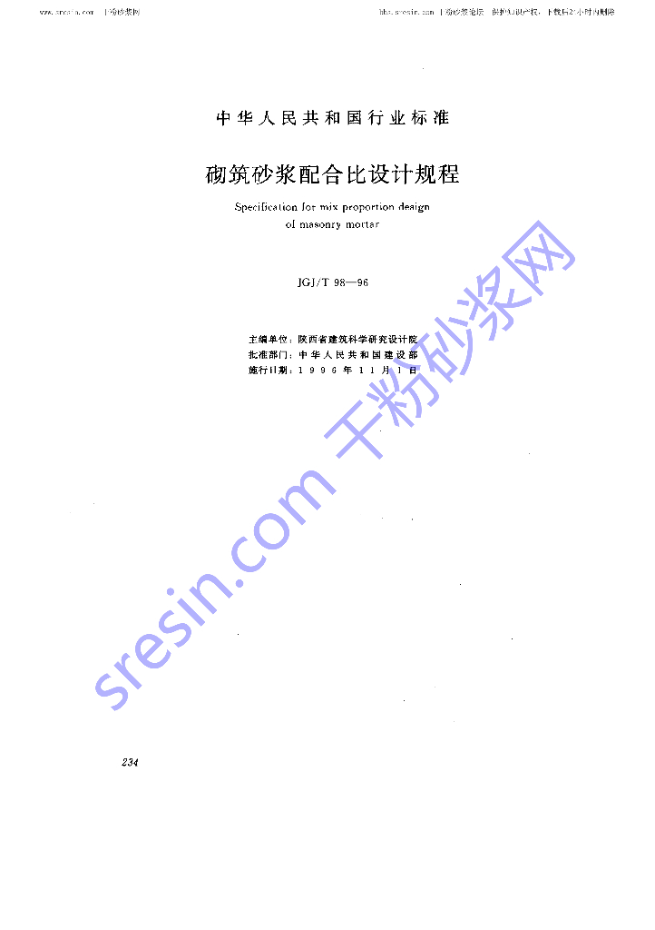 JGJ/T 98-1996 砌筑砂浆配合比设计规程