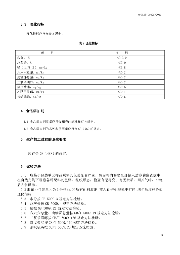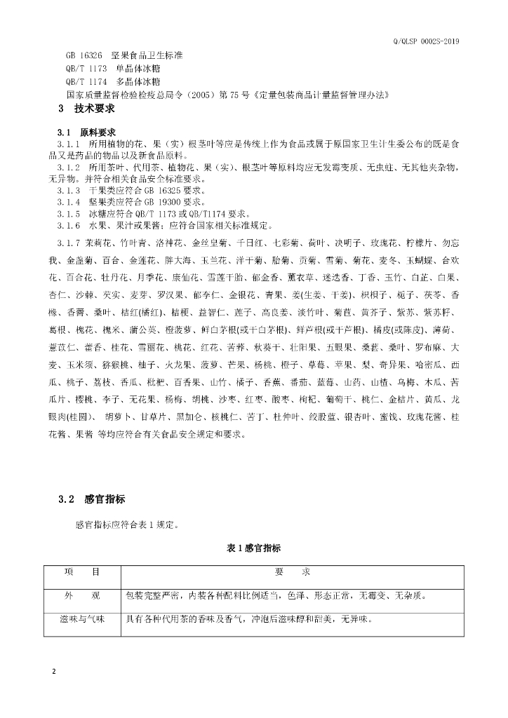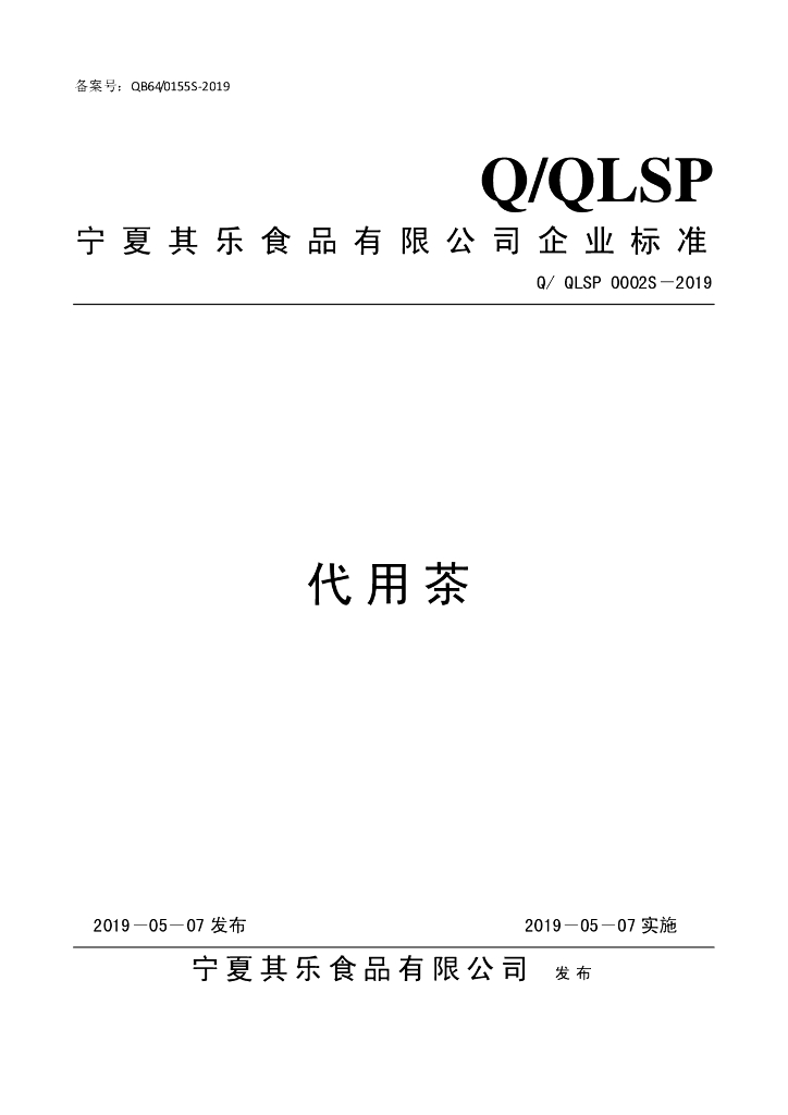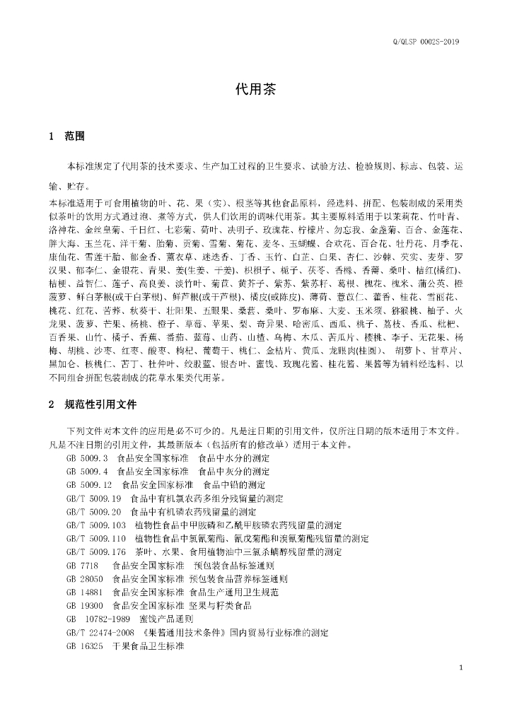 Q/QLSP 0002S-2019 代用茶
