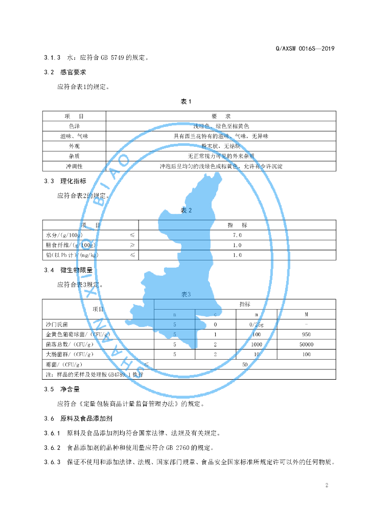 Q/AXSW 0016S-2019 西兰花粉(固体饮料)