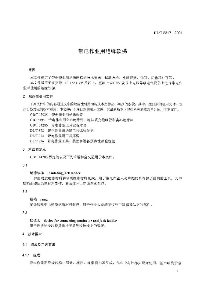 DL/T 2317-2021 带电作业用绝缘软梯