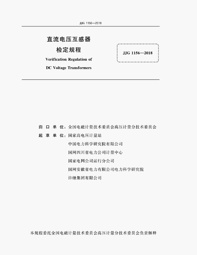 国家高电压计量站、中国电力科学研究院有限公司、国网四川省电力公司计量中心、国家电网公司运行分公司、国网安徽省电力有限公司电力科学研究院、许继集团有限公司