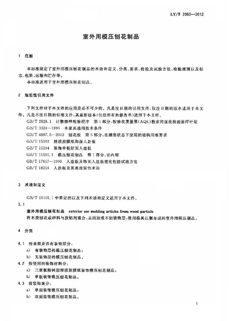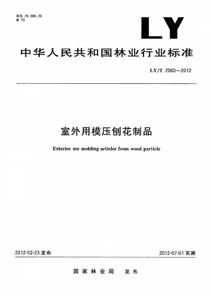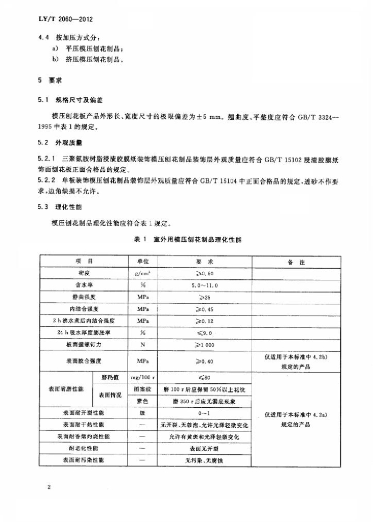 LY/T 2060-2012 室外用模压刨花制品