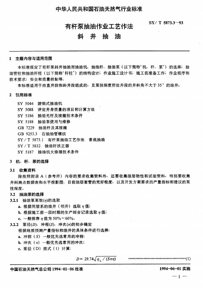SY/T 5873.3-1993 有杆泵抽油作业工艺作法 斜井抽油