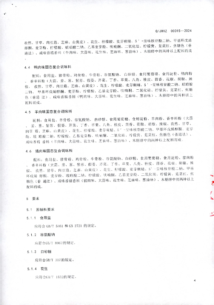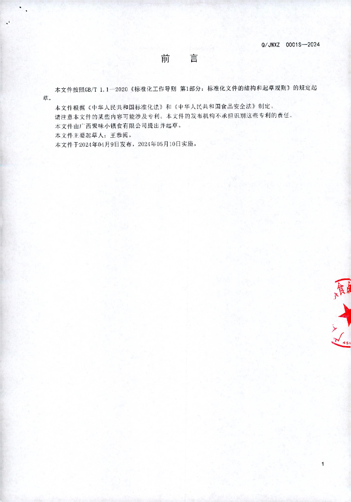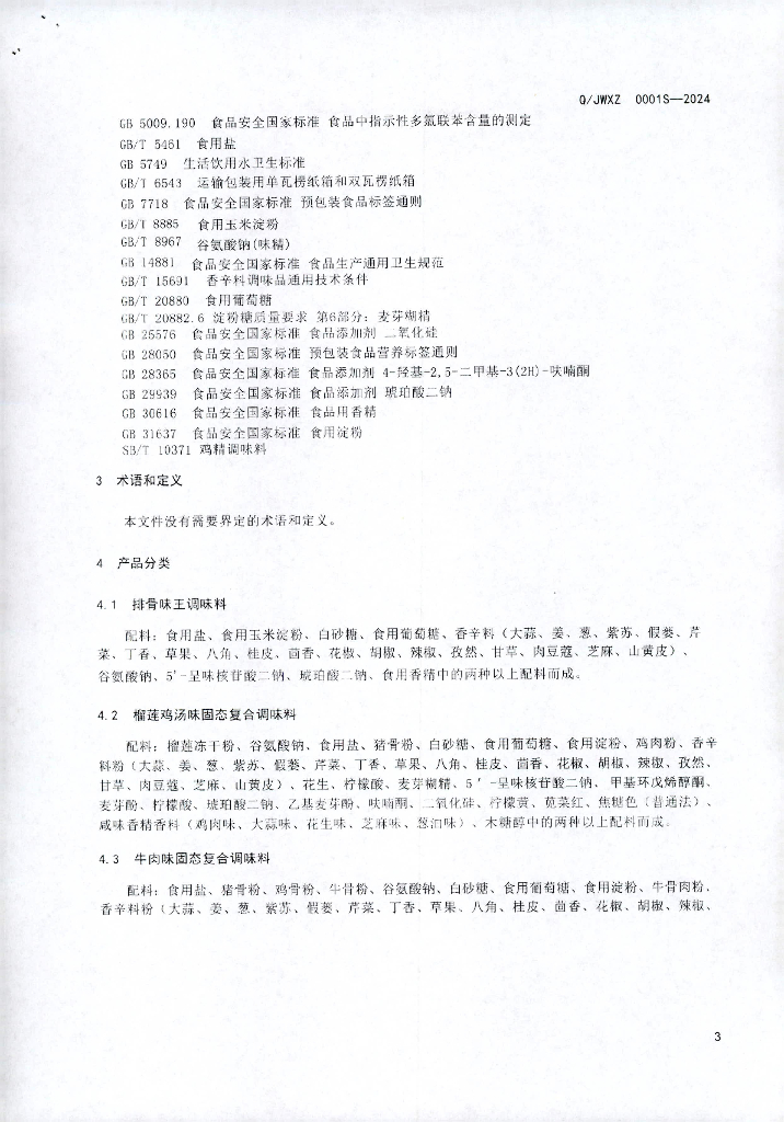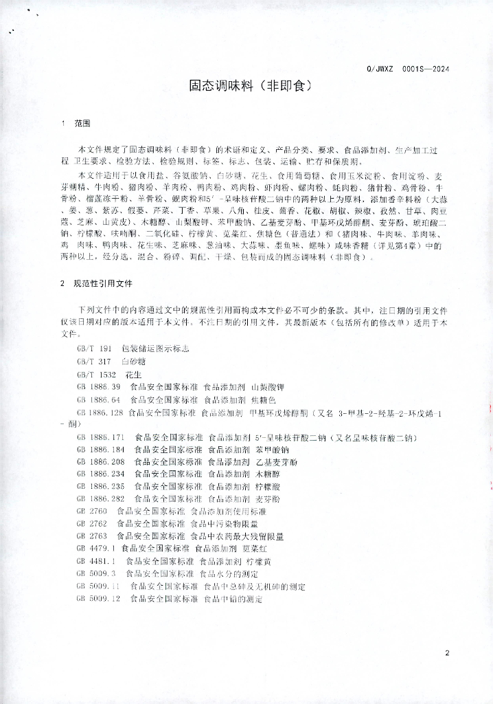 Q/JWXZ 0001S-2024 固态调味料(非即食)