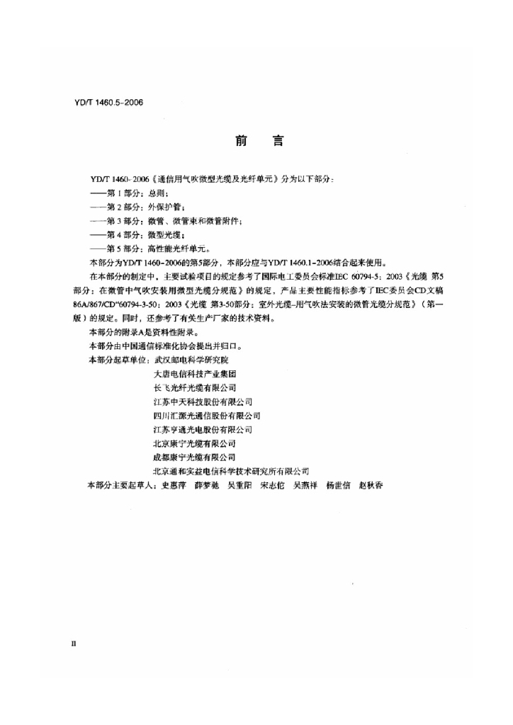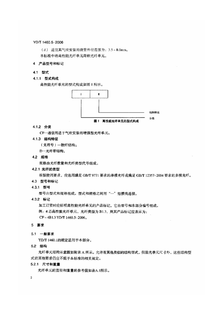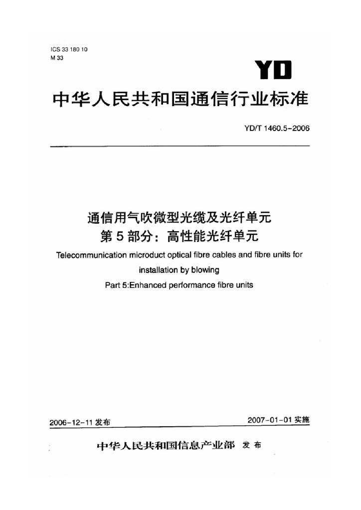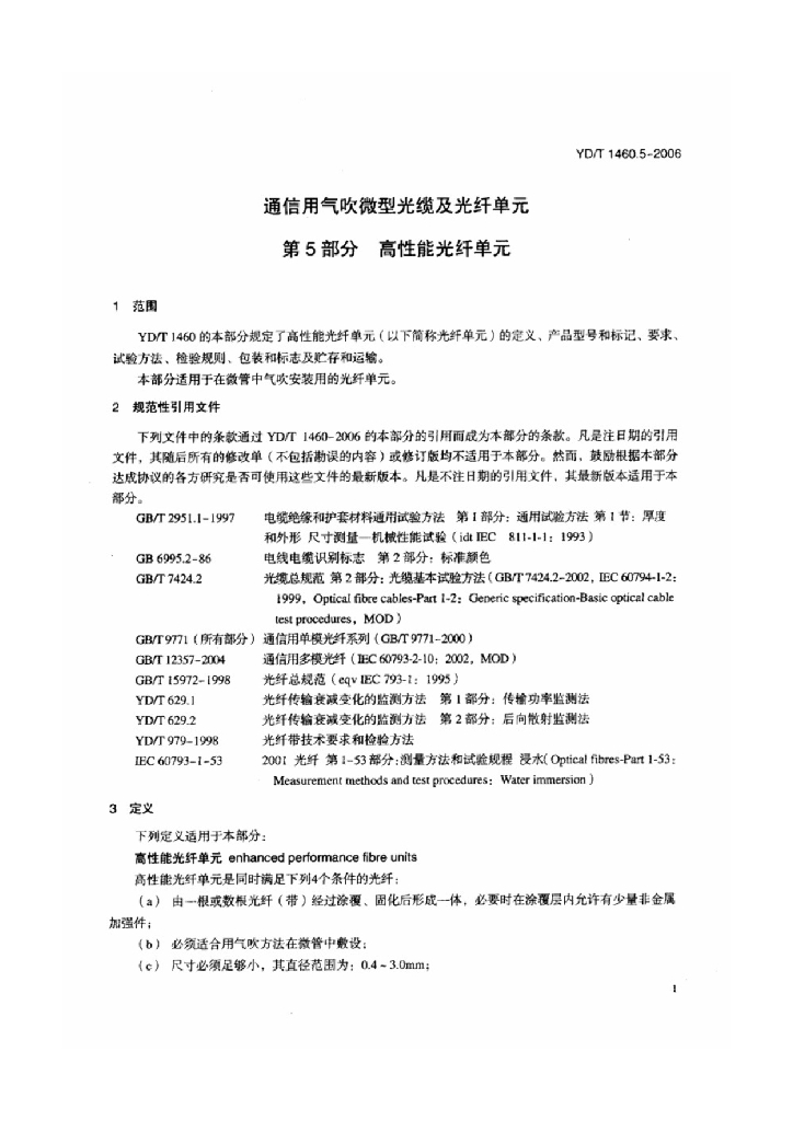 YD/T 1460.5-2006 通信用气吹微型光缆及光纤单元 第5部分:高性能光纤单元