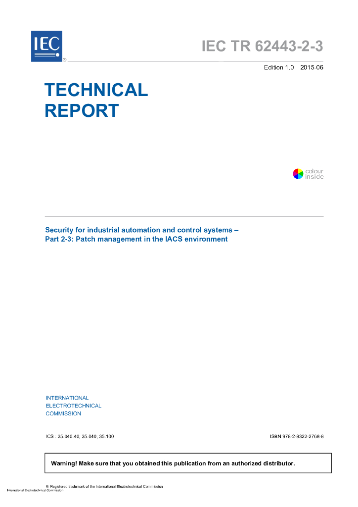 IEC/TR 62443-2-3-2015 工业自动化和控制系统的安全性 第2-3部分:IACS环境下的补丁管理